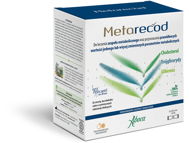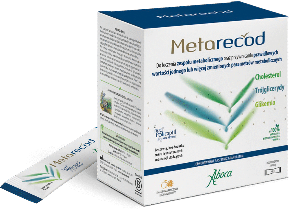 W przypadku zbyt wysokiego poziomu cholesterolu, trójglicerydów lub glukozy we krwi możesz wypróbować Metarecod. Produkt pomaga przywrócić równowagę jednego lub kilku zaburzonych parametrów metabolicznych. Dzięki temu jest również wskazany w leczeniu i profilaktyce zespołu metabolicznego. Ma w 100% naturalny skład.